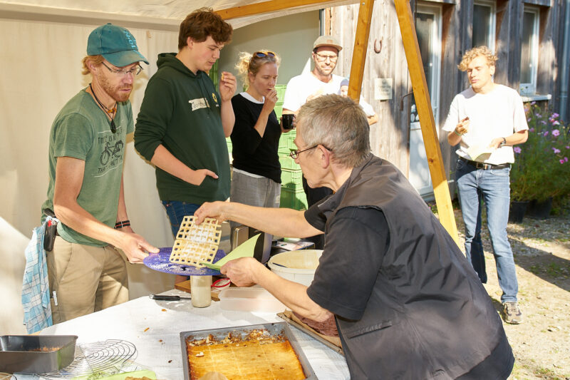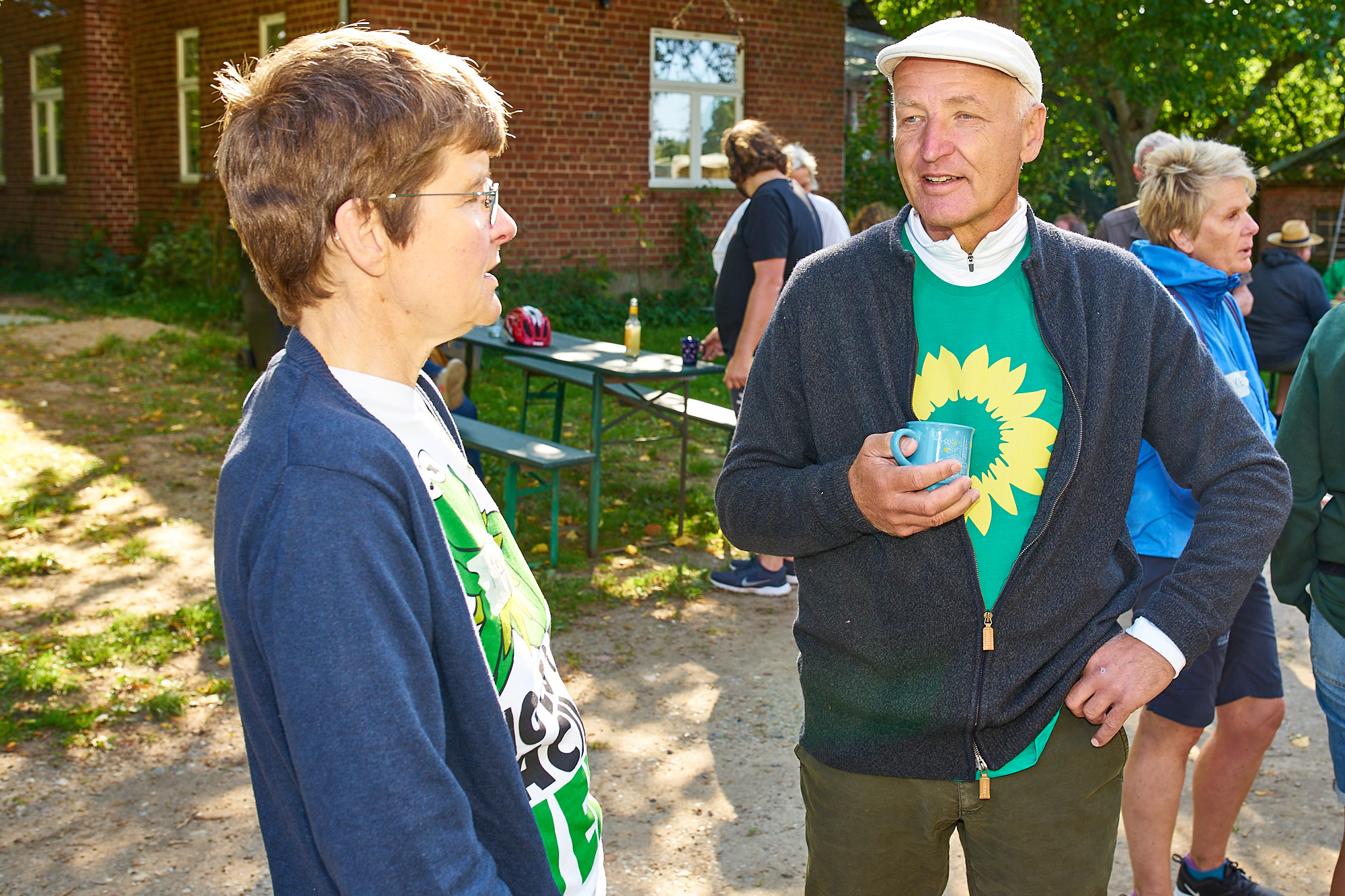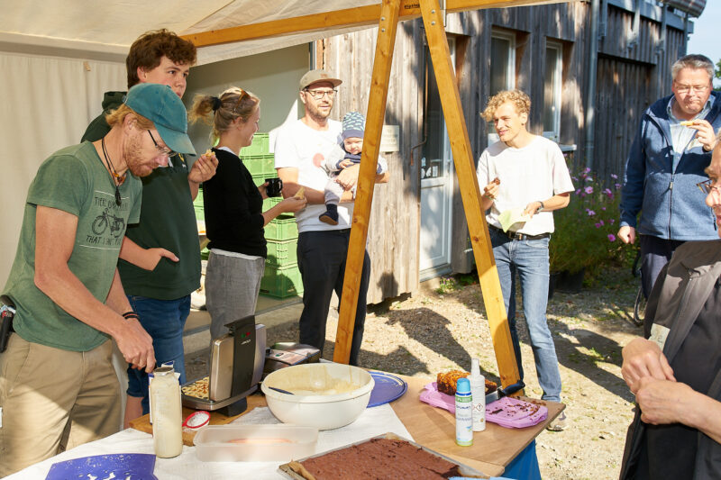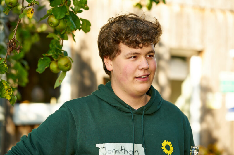 Drei Wochen vor der Bundestagswahl haben die Grünen-Ortsverbände im Dänischen Wohld eine Sternfahrt mit einem zentralen Ziel veranstaltet: Der Gemüsehof Böhnreben zwischen Osdorf und Felm ist zwar nicht genau die geographische Mitte zwischen Gettorf, Strande, Dänischenhagen, Altenholz und Schinkel, aber die jeweiligen Fahrzeiten waren einigermaßen deckungsgleich, da die Gettorfer einen kleinen Umweg gefahren waren. Sinn und Zweck des Treffens bei Kaffee, Waffeln und Kuchen war, Jakob Blasel kennenzulernen, den Direktkandidaten der Grünen im Wahlkreis Rendsburg-Eckernförde.